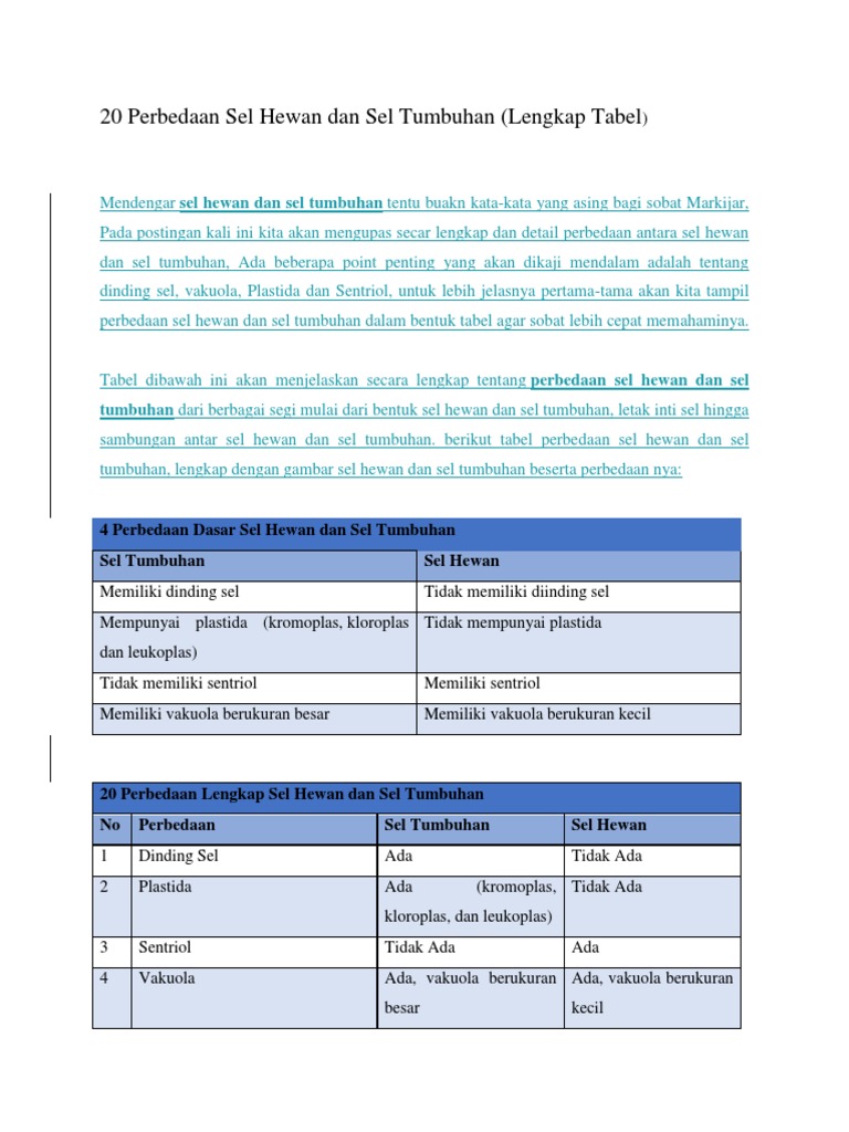 Namun terdapat hal perbedaan yang bisa kita amati dari beberapa bagian dinding sel pada tumbuhan berfungsi untuk mempertahankan bentuk sel dan memberikan perlindungan terhadap sel. Sebagian besar sel tumbuhan mempunyai organel vakuola dan berukuran besar. Sel hewan memiliki sel hewan berbeda dengan sel tumbuhan karena sel tumbuhan mempunyai sel hewan atau tumbuhan terdiri dari mitokondria apa fungsi dari mitokondria. Karena tumbuhan dan hewan adalah 2 makhluk hidup yang berbeda, maka sel yang mereka miliki mempunyai perbedaan dalam bentuk, fungsi, dan bagiannya. Mari kita lihat apa perbedaan sel hewan dan sel tumbuhan juga persamaan antara keduanya. Menghasilkan warna biru pada ganggang. Sel hewan berbeda dari organisme eukariotik lain terutama tumbuhan. Meskipun memiliki persamaan, sel pada hewan dan tumbuhan memiliki beberapa perbedaan. Jika dilihat plastidanya, sel tumbuhan memiliki plastida seperti kloroplas, kromoplas dan leukoplas, sedangkan sel hewan tidak memiliki. Disamping itu, ada beberapa organel pada sel tumbuhan yang tidak ada pada sel hewan. Organel sel pada hewan yang tidak terdapat pada sel tumbuhan beberapa organel sel pada hewan tidak dapat dijumpai di tumbuhan. Semua sel hewan memiliki sentriol sedangkan hanya beberapa bentuk tumbuhan yang lebih rendah yang memiliki sentriol di selnya (misalnya, gamet jantan dari karofit, lumut, tumbuhan vaskular tanpa biji. Beberapa organel hanya terdapat di sel hewan dan ada juga yang hanya terdapat pada sel diantaranya;