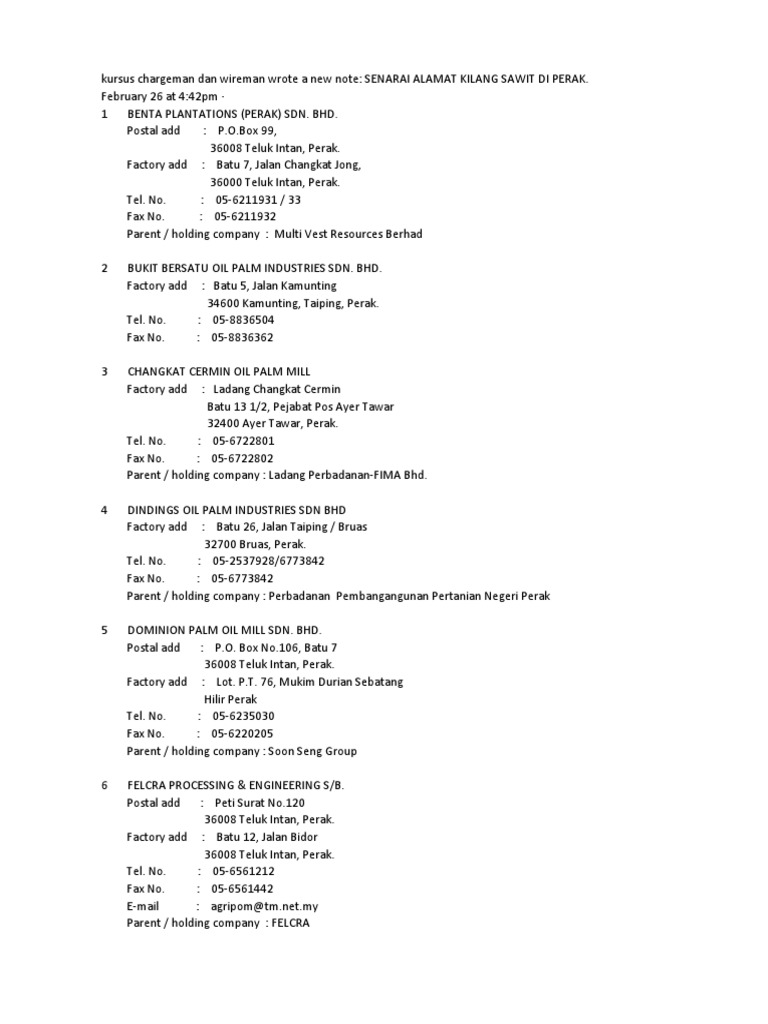 Lima Jam Padam Kebakaran Silo Sawit from www.sinarharian.com.my Tandakan dengan betul lokasi yang dinyatakan pada peta di bawah. It is the center of hilir perak district and the third largest town of perak state. Teluk intan ha ospitato anche l'incontro tra raja abdullah, dato 'maharajalela e altri capi malesi che complottarono per uccidere jww birch teluk intan è stato il principale insediamento amministrativo e commerciale per le città vicine più piccole come tapah , bidor , bagan datoh e hutan melintang. Kedai makan tepi kilang sawit felcra. Hari pertama pembukaan tesco teluk intan, ramei bebenor kome wei. 787, kampung batu 12, perak, kampung batu dua belas, 36000 teluk intan, perak, malaysia. Jika anda ke teluk intan, jangan lupa merasai keenakan makanan di 10 tempat makan teluk intan. Apakah kalian pernah mendengar kata kilang?