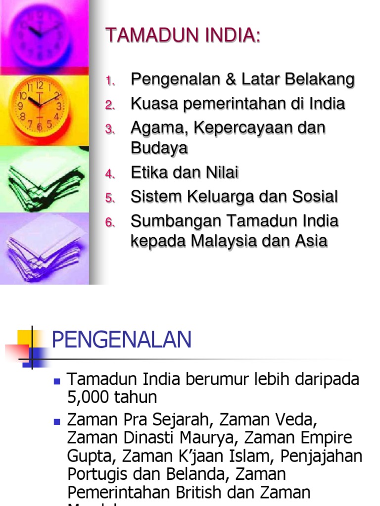 Rumusan tamadun indus mengajar kita bahawa kedamaian & keamanan ialah tunjang kepada kekuatan sesebuah bangsa untuk mencapai kemajuan dan kecemerlangan. Sumbangan tamadun india & tokoh raja chola 1 mpu (titas). Ini kerana reka bentuknya agak berlainan dari tamadun lain, kecuali di sebelah asia timur. Pelbagai bentuk seni bina islam yang terdapat pada zaman kerajaan moghul india abad. Tamadun india berpusat di sekitar lembah sungai indus yang dikenali sebagai 'harrapa'.